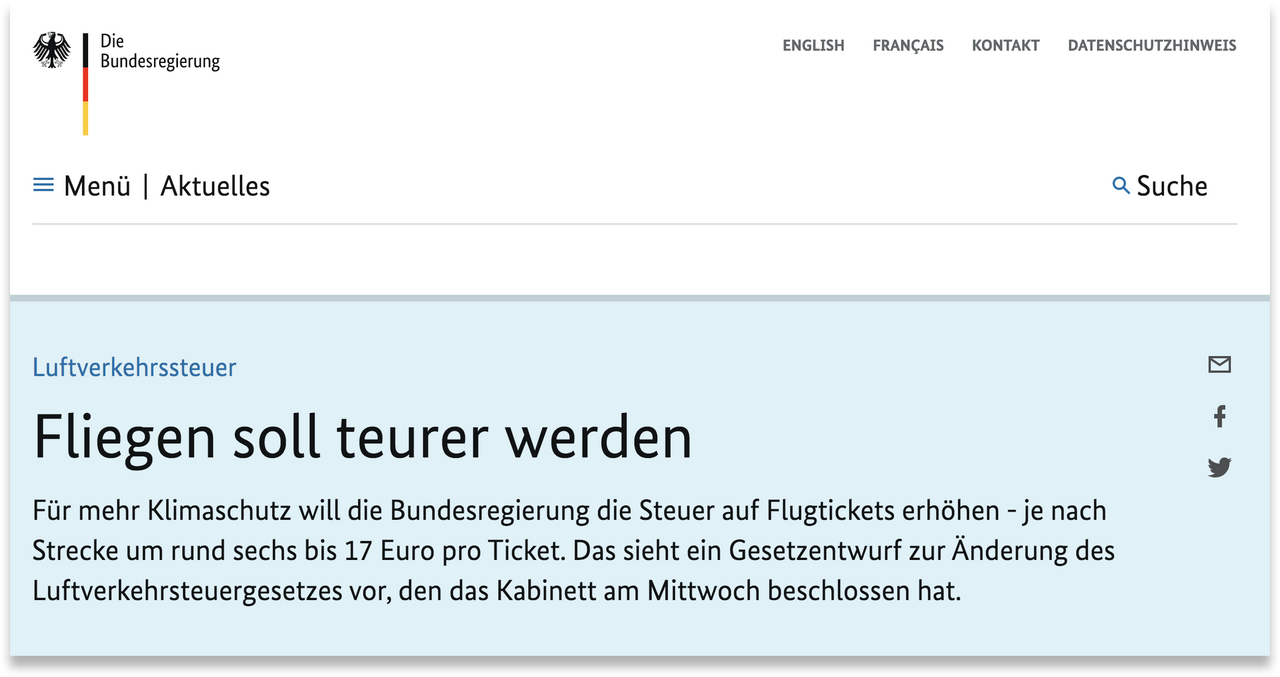 „Fliegen soll teurer werden“ – so einfach kann Politik sein.