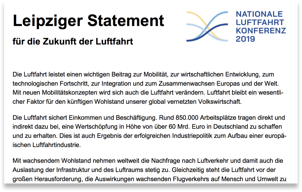 Leipziger Statement für die Zukunft der Luftfahrt